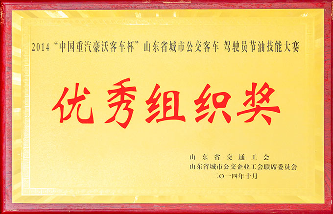 2014“中國重汽豪沃客車杯”山東省城市公交客車駕駛員節油技能大賽優秀組織獎
