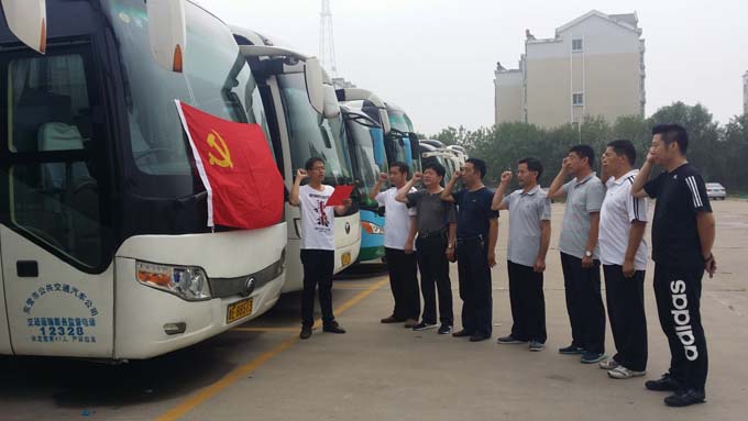 為慶祝中國共產(chǎn)黨建黨95周年,深化“兩學(xué)一做”主題教育活動(dòng),使全體黨員進(jìn)一步牢記入黨誓言。7月1日上午,東營市公交公司汽車二隊(duì)組織全體黨員在停車場開展了重溫入黨誓詞活動(dòng)。
