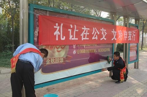 10月16日上午,市公交公司積極響應市文明辦開展的“從我做起,走向文明”志愿服務集中行動,組織公司及車隊后勤人員對城區410個公交站牌站棚進行了全面清潔,對亂貼亂畫及小廣告進行了徹底清理,并積極疏導乘客排隊上車,維護乘車秩序,用實際行動踐行了“從我做起,走向文明”的活動宗旨,得到了廣大市民的一致好評。