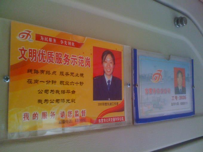 近期,市公交公司汽車三隊將16名2011年度公司先進(jìn)個人和標(biāo)兵制作了“文明優(yōu)質(zhì)服務(wù)示范崗”標(biāo)志牌,安裝到車廂內(nèi)最顯著位置,使其“亮明身份、形象上車、壓力上肩、優(yōu)質(zhì)服務(wù)”,以便接受廣大乘客的監(jiān)督。